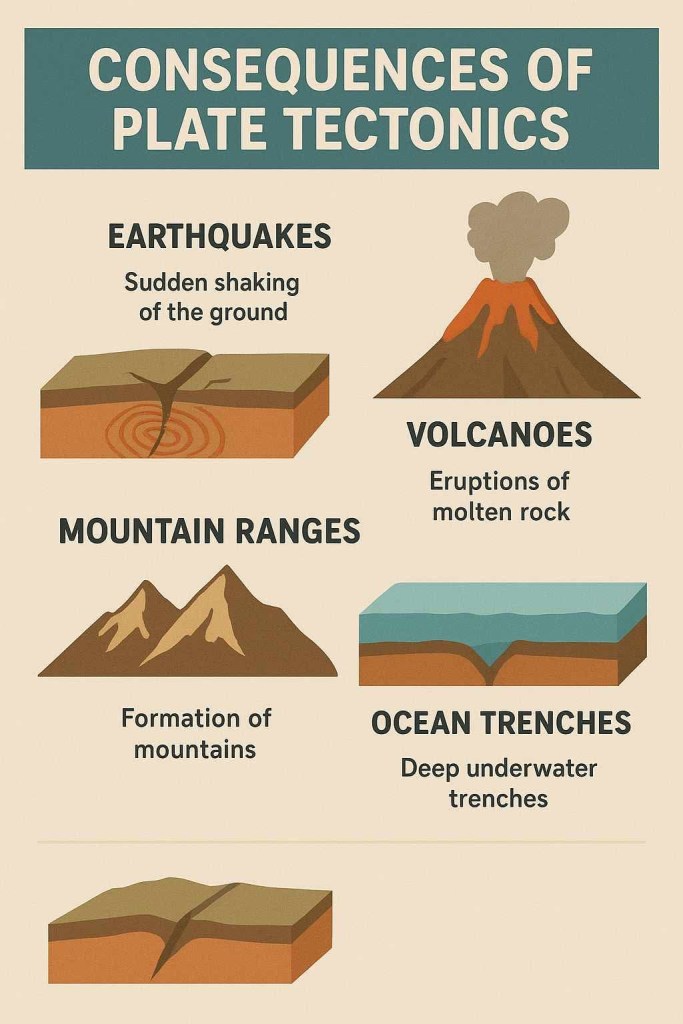 This movement causes earthquakes, volcanic eruptions, and the drifting of continents.