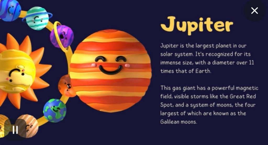 5. Jupiter – The largest planet, a gas giant with a famous Great Red Spot storm.